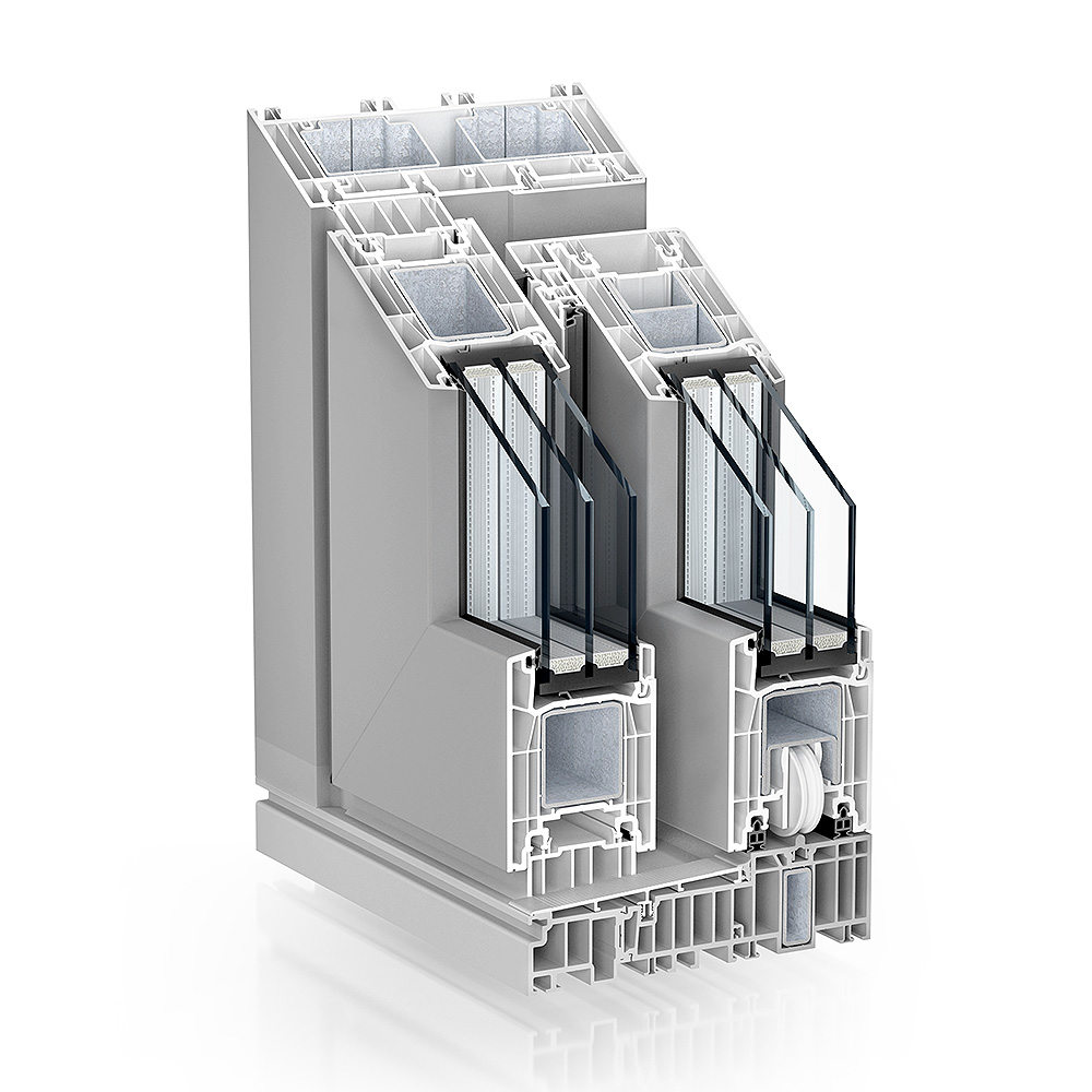Hochwärmedämmendes 7-Kammer Mitteldichtungssystem mit 88mm Bautiefe,